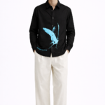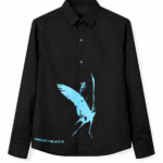 Introducing the “Blue Wing Affair” Shirt, where elegance meets artistic flair. This black button-down shirt features a striking blue wing graphic, bringing a splash of color and sophistication to your wardrobe. Crafted from premium-quality fabric, it ensures a comfortable and stylish fit for any occasion